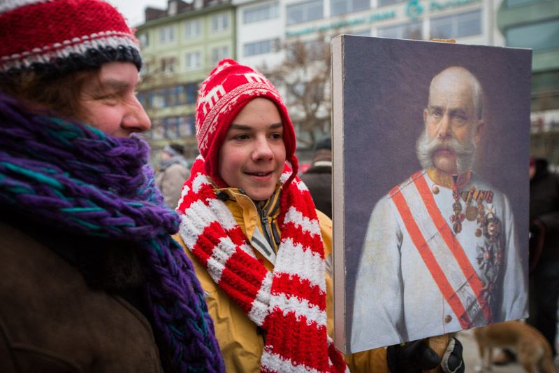 Prosloveno 7. ledna 2017 u Matyášovy brány na závěr pochodu Za monarchii